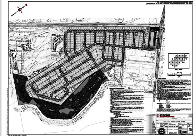 The site plan indicates the townhouses would cover most of the middle portion of the location and create about 20 new streets, leaving the southern area that had been a 9-hole course for reforestation.